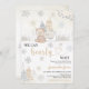 Celebrate your little one’s upcoming arrival with our Gold Bear Baby Shower Invitation! This delightful invite showcases a cute bear surrounded by gold and silver pine trees, with delicate gold and silver snowflakes falling softly around. The combination of these winter elements creates a cosy, magical atmosphere perfect for a boy or girl winter baby shower. BBS571