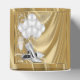 Elegant gold and silver glitter high heel shoe gold birthday party favour boxes with a pretty gold satin look background. You can easily customise these gold favour boxes by adding text in the font style and colour of your choice.