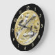 This distinctive wall clock features a stunning abstract image comprised of bold swirls in gold, grey, black and white. The abstract design is framed in shiny gold, and the light gold numbers on the black perimeter make the clock easy to read. Fits into most decors easily. Be sure to see the matching home decor products in our store.