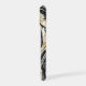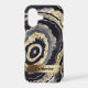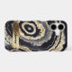 Here's a unique and attractive phone case that resembles the center of an agate stone. Black, silver gray and glittery gold spin together to make a swirled circle pattern. Your name or other custom text is in black on a shiny gold tattered edge banner. Beautiful!