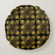 Gold Black Ancient Greek Meander Pattern Round Cushion