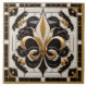 Gold Black and White Fleur de Lis Faux Relief Tile