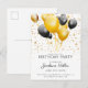 Festive gold and black balloons and gold star confetti modern birthday party invitation. Festive and trendy style.