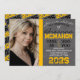 Gold Yellow & Black Modern Chalkboard Graduation Photo Invitation.