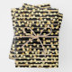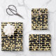 A trio of gift wrap, each with the same faux gold horizontal stripe across which confetti sprinkles appear to sparkle and shine. They are set on a black background that may be changed to any colour of your choice and are perfect for special wedding anniversary celebrations; formal business events or stylish black and gold theme parties.