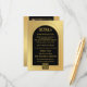 Elegant wedding enclosure card in gold and black with sparkling confetti glitters. On the back you can add your custom photo. A QR code template is added for your convenience. In case you don't want to use a photo or QR code, you can remove the background rectangles in the advanced editor.