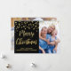Merry Christmas customisable photo card in festive gold glitter effect confetti pattern with black background. Add your custom text to this card to create a unique Christmas photo greeting this holiday season for friends and family. Please note glitter effect is printed photographic effect only.