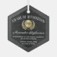 Classic, traditional and elegant black and gold effect wreath with seal customisable recognition ornament to award the recipient for any purpose. Award students, employees or anyone for excellence or completing a course, school, training or education program. Add your details and company name. Great for any career field or job industry use... school graduation, consultant, customer service employee or any title. Custom design in handsome black metal style pattern background with gold frames. Reward the efforts of your students and staff with this customisable, personalised award Christmas holiday ornament.