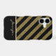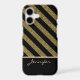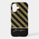 Here's a pretty phone case that features a glittery antique gold diagonal stripe pattern over a dramatic black background. The bottom third of the case is solid black to allow your name in matching gold to appear. The two areas are separated by a thin, shiny antique gold line. Stunning, and easy to customise. Bold and unique! *Please note - the image is printed and does not contain actual glitter or metallic substance.