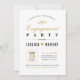 This elegant wedding engagement party invitation with gold typography and black background. You can customise the wording, fonts, and background colour.