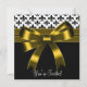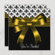 Elegant Fleur de Lis black and white with bright gold bow design party invitation. This template design works well as an invitation to a birthday party, cocktail party, holiday party, corporate party, black tie formal, prom, retirement party, graduation party, bachelorette party, engagement party, wedding, New Year's Eve party, and any other special occasion. Add your details to the front and back by simply choosing the orange "Customise it!" button to begin adding your event details, font style, font size & colour, and wording. Gold fleur de lis party invitations. Please note - all of the invitation designs you will find on Zazzle are printed graphics on flat paper stock with no actual jewels, bows, raised, embossed, or added parts or pieces.