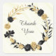 Elegant black and gold flowers botanical wreath thank you wedding sticker