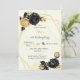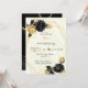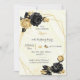 Elegant black and gold flowers on a gold geometric frame on white and gold marble background birthday party invitation