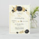 Elegant black and gold flowers on a gold geometric frame on white and gold marble background birthday party invitation