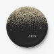 Gold Black Girly Glitter Sparkle Monogram Name Paper Plate