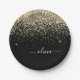 Gold Black Girly Glitter Sparkle Monogram Name Paper Plate
