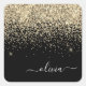 Gold Black Girly Glitter Sparkle Monogram Name Square Sticker
