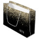 Gold Black Glitter Girly Monogram Initials Large Gift Bag