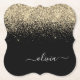 Gold Black Glitter Script Monogram Girly Name Paper Coaster