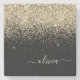 Gold Black Glitter Script Monogram Girly Name Stone Coaster