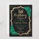 Gold Black Green Roses 50th Birthday Invitation
