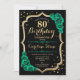 Gold Black Green Roses 80th Birthday Invitation