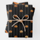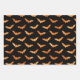 Gold Black Halloween Spider Pumpkin & Bats Pattern Wrapping Paper Sheets Set of 3.