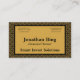 A gold and black lattice surrounds a gold and black frame on this elegant and professional card for a financial planner. The card could be used for any finance business, such as stock broker, investments, banker, etc, as well as other profesions. The back is plain gold.