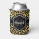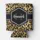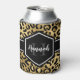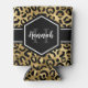 Chic gold and black leopard print can cooler with a custom name and monogram template. A cute and trendy safari animal print pattern background topped with your own bit of personalisation.