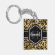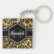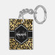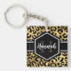 Chic gold and black leopard print keychain with a custom name and monogram template. A cute and trendy safari animal print pattern background topped with your own bit of personalisation.