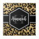 Chic gold and black leopard print small ceramic tile with a custom name and monogram template. A cute and trendy safari animal print pattern background topped with your own bit of personalisation.