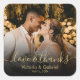 Gold Black Love and Thanks Script Wedding Photo Square Sticker