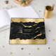 A beautiful bold golden yellow font rests against a black rectangle edged with white which is framed by a vibrant faux gold and black marble look infused background that looks three dimensional and is extremely elegant, chic and sophisticated. These are ideal for new business launches; weddings or any business that would like to keep a record of guests attending their show or event.