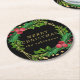Gold Black Merry Christmas Party Holly Glitter Round Paper Coaster