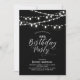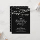 Celebrate a special day with this chic gold birthday party invitation! This design features string lights and a stylish gold script typography with a black background. You can personalise the text to any age/milestone birthday. More adult birthday invitation and party supplies are available at my shop BaraBomDesign.