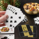 Glitter monogram playing cards with your initial and name in a gold, black, and white colour scheme.