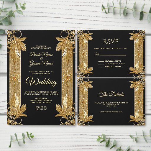 Beautiful Gold Black Ornate Floral Guest Book