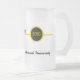 Give a personalised frosted mug in school colours to the graduate! Design features an attractive yellow bar with a black and yellow circle to put the graduating year on it. Add a name and degree or company and title above. This design looks great on any size and style of mug. A great graduation or corporate gift!