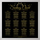 This beautiful 12 table wedding seating chart will make it easy for your guests to find their assigned seats at your reception. Features a design that is simple yet elegant with gold text on a black background and a gold faux foil vintage floral filigree border.