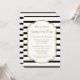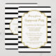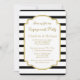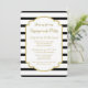 Custom template engagement party invitations in classic black and white stripes pattern with gold border and handwritten style text. Fully customisable with your engagement party details. Also available in a wide range of matching wedding products.
