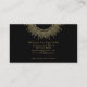 A celestial ethereal yoga instructor business card featuring a modern gold sun mandala with sun rays, and phases of the moon, with a pretty, modern script signature type.