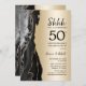 Gold and black agate surprise 50th anniversary celebration invitation. Elegant modern design featuring watercolor agate marble geode background, faux glitter gold and typography script font. Stylish invite card perfect for a classy wedding anniversary party. Printed Zazzle invitations or instant download digital printable template.