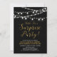 Celebrate your special day with this stylish surprise anniversary party invitation! This design features a stylish script typography and light strings on a black background. Perfect for a garden party, barn party, or any surprise party.
