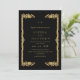 Modern stylish dark wedding invitation black with gold dust on with a gold ink pour effect (the gold is a digital effect, not real foil!) and modern calligraphy. Classy and elegant, simple and modern invitation.