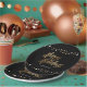 Personalise these simple black with gold and white confetti Holiday Party paper plates. Christmas party plates for your next corporate event. "Happy Holidays" in a gold printing effect on these paper plates.
