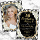 Elegant floral feminine 50th birthday invitation with your photo at the back of the card. Glam black white design with faux glitter gold. Features black and white damask pattern, roses, script font and confetti. Perfect for a stylish adult bday celebration party. Personalise with your own details. Can be customised for any age! Printed Zazzle invitations or instant download digital printable template.