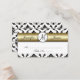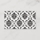 Wedding Reception Place Card with black and white damask pattern printed with your monogram initial, the bride and groom names on a metallic gold line with 3D shadow effect. Print with your names and monogram and then hand write your guest names and table numbers on each card. Design by Elke Clarke© Graphics licensed.