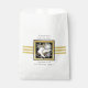 The design features a pair of ice skates over a snowflake crest with faux gold glitter, black, and white background. This elegant winter sports design serves as modern and unique favour bags with personalised text for ice skating themed party, Christmas, and more!