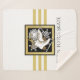 The design features a pair of ice skates over a snowflake crest with faux gold glitter, black, and white background. This elegant winter sports design serves as a cool modern and unique Sherpa blanket with personalised text - Gift Idea for figure skater, ice dancer, speed skater, and more!