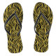 Black flip flops with a pattern of gold and black zebra stripes, these are perfect to dress up your outfit for any occasion.